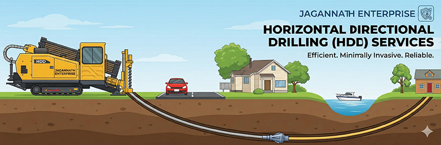 Jagannath Enterprise (JE) offers state-of-the-art Horizontal Directional Drilling (HDD) services for underground drilling, ducting, and cable laying/blowing. Our expertise in HDD enables us to provide efficient and minimally invasive solutions for various infrastructure projects, minimizing disruptions to the environment and daily life.